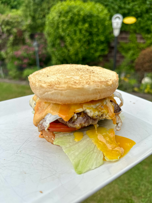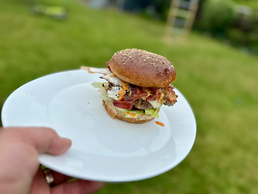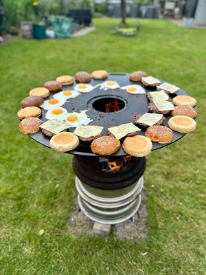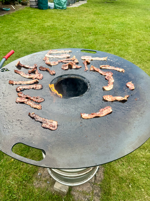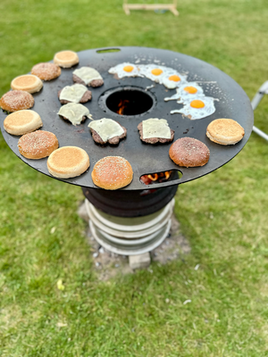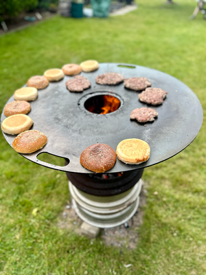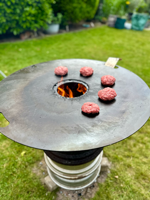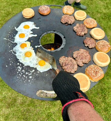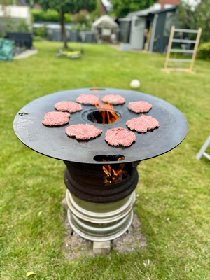 Ich mache Burger 🍔 am liebsten auf der Feuerplatte, da kannst du drauf rumsauen, hast verschiedene Temperaturzonen, einfach klasse.