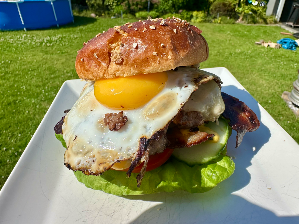 Burger von der Feuerplatte. (Text und Bild kann Werbung enthalten) Ich mache Burger 🍔 am liebsten auf der Feuerplatte, da kannst du drauf rumsauen, hast verschiedene Temperaturzonen, einfach klasse. Zuerst brate ich den Bacon kross und dann geht es mit den Patties weiter, Fleisch drauf, platt drücken und braten lassen. Wenn ich das Fleisch wende, lege ich die Buns außen auf die Platte und schlage auch die Eier drauf. Natürlich kommt noch Käse auf die Patties😜. Wenn die Eier fertig...