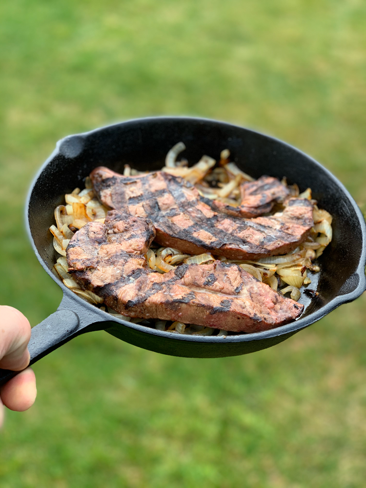 Ich habe so 1-2 mal im Jahr Appetit auf Leber und warum dann nicht vom Grill. Schnell beim Metzger des Vertrauens (MdV) etwas frische Kalbsleber gekauft und ein paar Stücke auf den Grill gelegt. Die Leber habe ich auf jeder Seite 2 mal gegrillt und da war sie auch schon fertig. Nebenher habe ich auf dem Seitenbrenner ein paar Zwiebeln angeschmort. Ich habe leider vergessen ein Anschnittbild zu machen, die Leber hatte den perfekten Garpunkt, durchgegart und nicht trocken👍🏻. Es war mal...