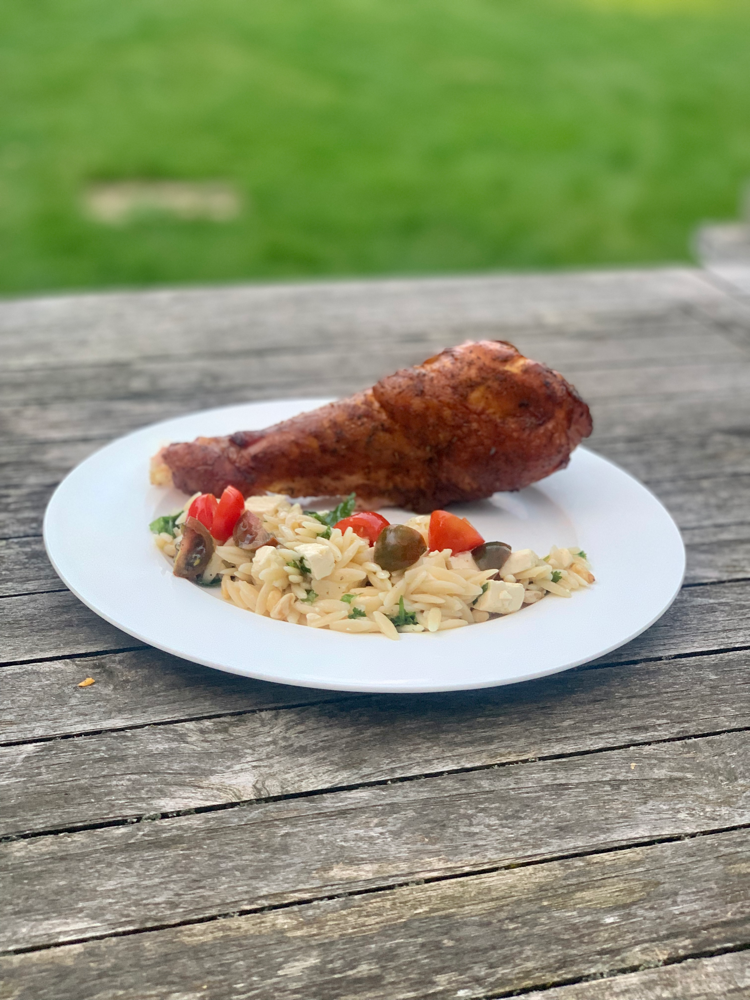 Putenkeulen aus dem Smoker. (Text und Bild kann Werbung enthalten) Ich habe von meiner Schwiegermutter ein paar Putenkeulen bekommen und habe mich dann im Netz mal schlau gemacht was man damit so anstellen kann. Die meisten legen sie über Nacht in eine Brine ein, die Zeit hatte ich leider nicht, da sie an dem Tag gegessen werden sollten. Ich dachte mir, es muss doch auch ohne gehen! Ich habe sie dann mit einem Chicken Rub von Feinkost Albrecht eingerieben und bei 160Grad in den Pelletsmoker...