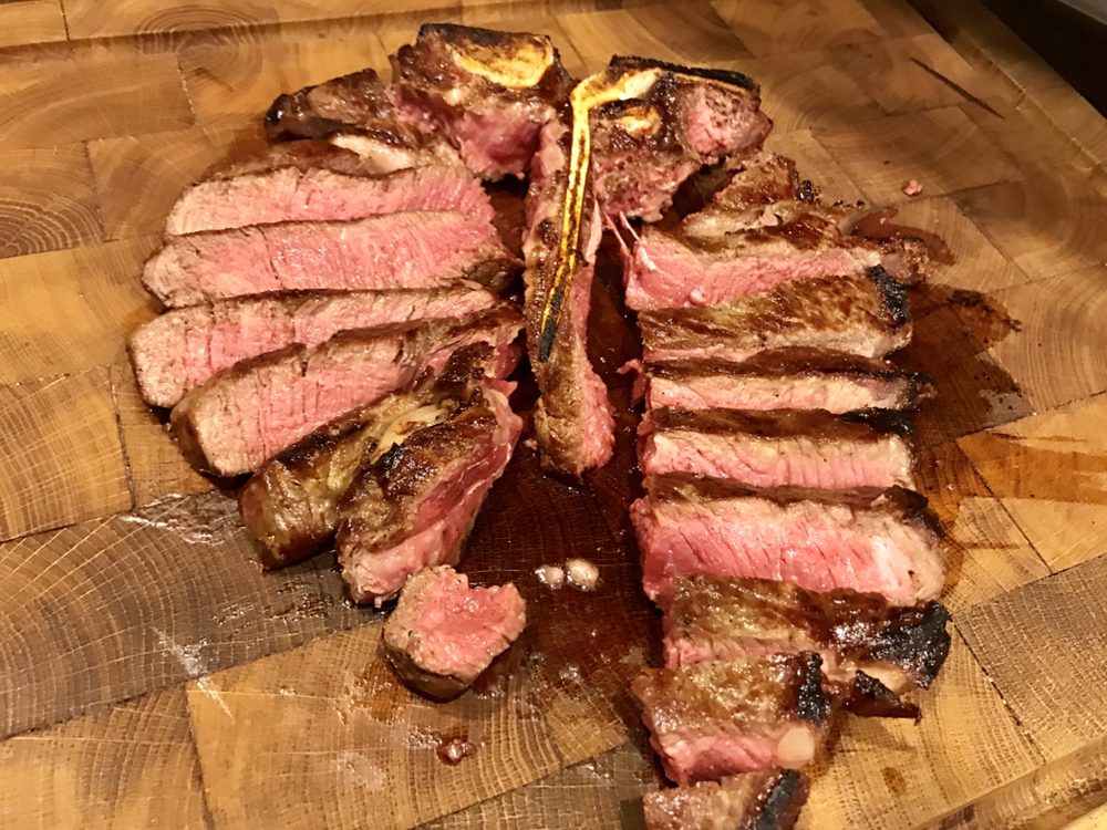 Ich hatte mal wieder Lust auf ein leckeres Steak, also ein schönes T-Bone 🥩aus der Truhe geholt und im Kühlschrank schonend aufgetaut. (Werbung durch Überzeugung) Dann in den Oberhitzegrill, erst oben auf volle Pulle und nach gewünschtem Bräunegrad, dann nach unten und auf 52-54 Grad Kerntemperatur gezogen. Dazu gab es in Mehl panierte Zuchini-Scheiben und Kartoffeln. Etwas Salz und Pfeffer, mehr braucht es nicht. Es war super lecker. Das T-Bone ist mein zweitliebstes Steak. Wer weiß...